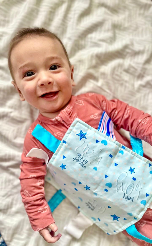 Baby Boy Newborn Hospital Blanket Blue Pink Tag Lovey Toy