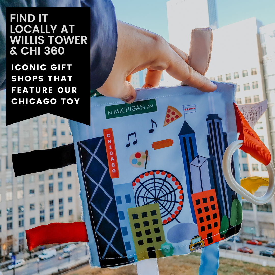 Chicago 360 has the top views in the city where you can take in the skyline. Our Chicago lovey toy is a keepsake that is a top seller at this iconic gift shop.