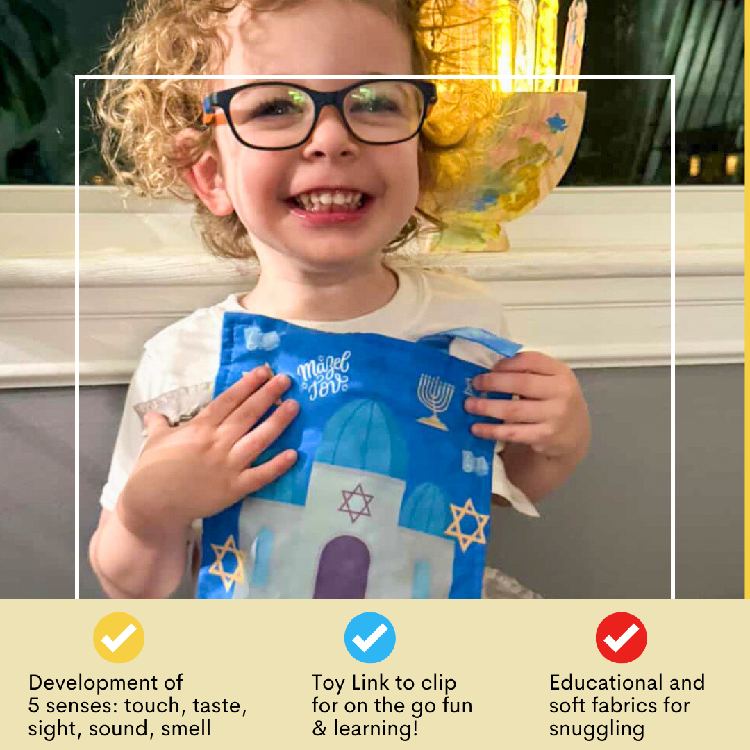 Introduce baby and children to their first Hanukkah, Passover, Shabbat, Rosh Hashanah, Yom Kippur, Sukkot, Purim and more. Look & find The Star of David, Dreidel, Menorah and promote inclusiveness for all religions.