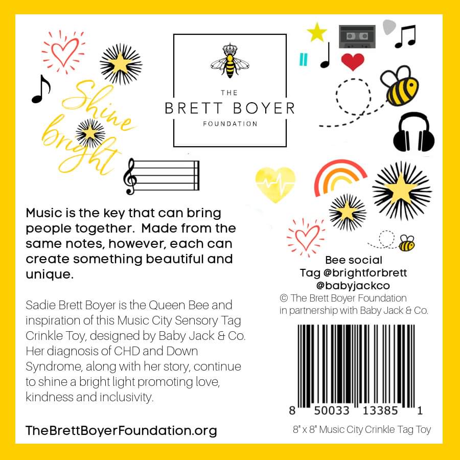 Baby Jack has partnered with The Brett Boyer Foundation to promote all things bright and kind, raising awareness for CHD and Down Syndrome.